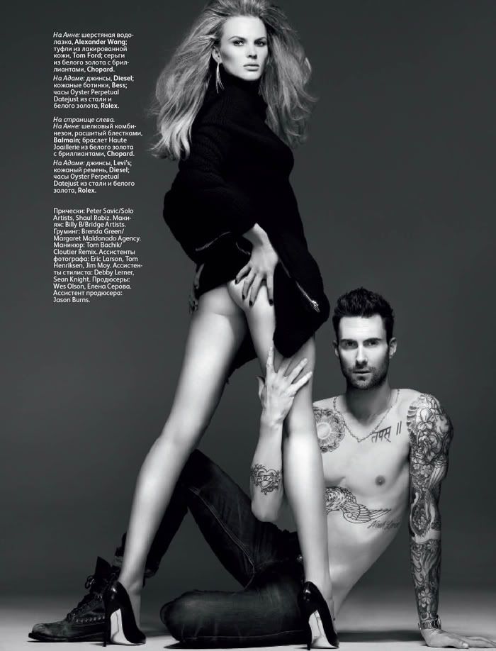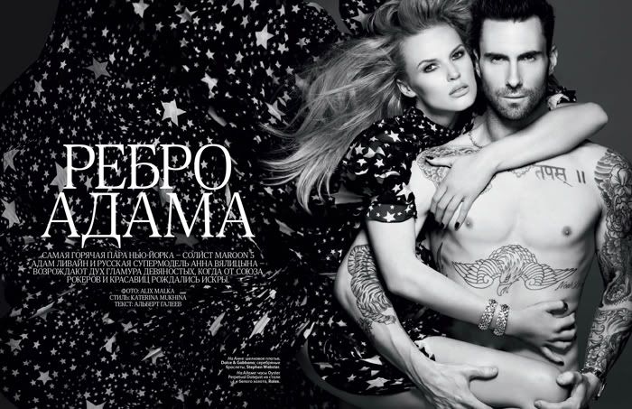 Adam Levine e Anne Vyalistsyna para Vogue Russa