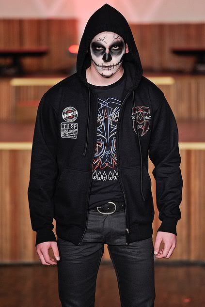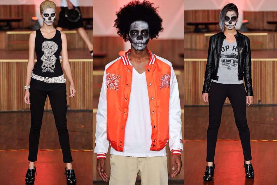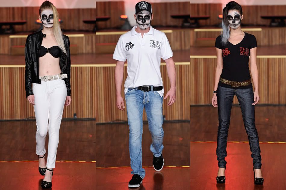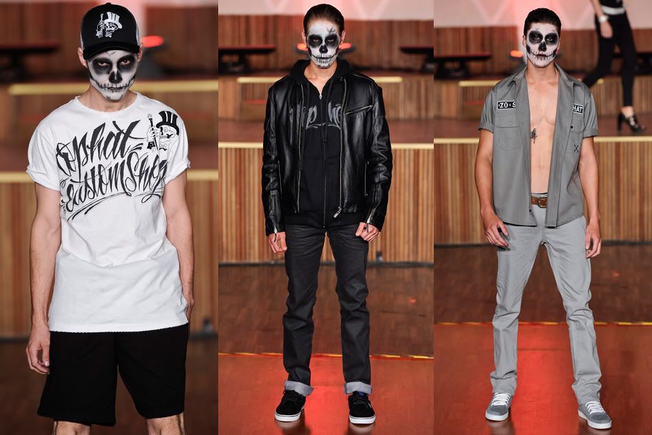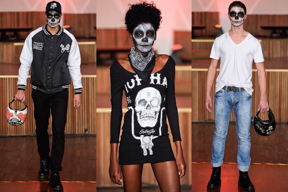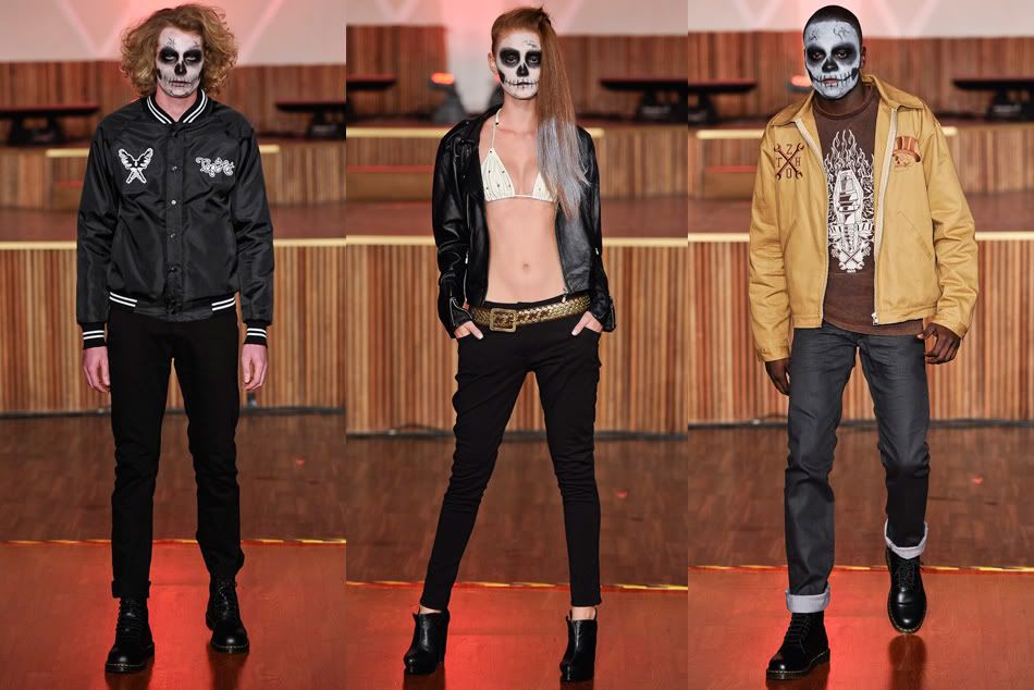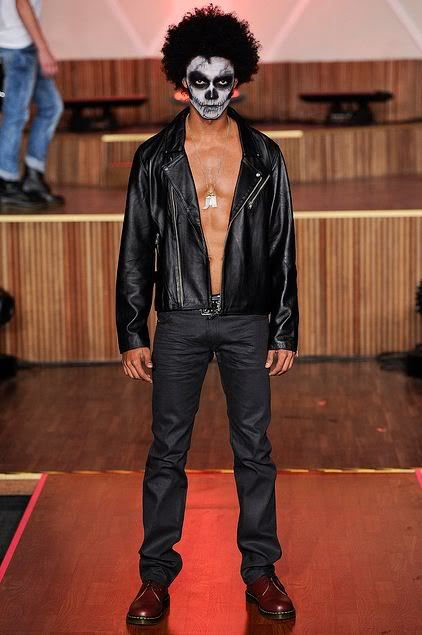 Os modelos estavam com rostos pintados em homenagem ao astro Fred Astaire em versão caveira, de forma a traduzir na make a atitude e o logo da marca.