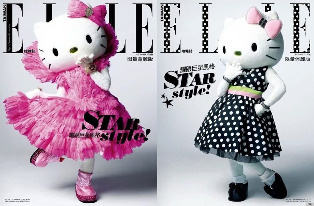 Não foi porque a Hello Kitty é fofa que hoje estampa a capa da Elle Taiwan. A gatinha tem uma forte influência no comércio asiático, tendo vários produtos licenciados como linha de joias, restaurantes, aviões e até hotel. E aproveitando sua fama, a Elle Taiwan estampa a linda Hello Kitty totalmente deslumbrante e divina em sua capa de dezembro.