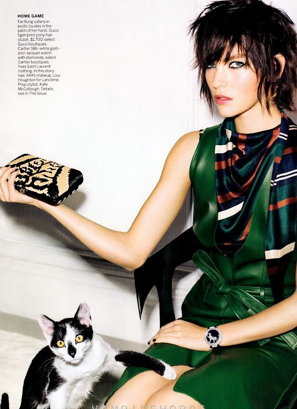 Com a top americana Arizona Muse, que deslumbra em um belo trabalho de styling, um gatinho super fofo e brincalhão contrasta a bela campanha que foi fotografa por Raymond Meier. O tal felino do editorial "Cat's Meow", chamou tanta atenção que houve comentários que a revista poderia ter se inspirado no aplicativo Cat Effects. Será?