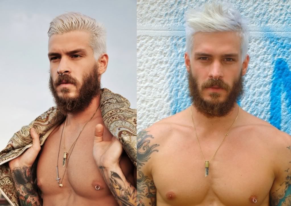 Pintar ou não a sobrancelha? Isso é algo pessoal e que você deve mesclar com seu estilo, assim como deixar raiz escura. A tendência é não combinar, e um ótimo exemplo é o modelo Mateus Verdelho, que já usou e abusou da barba estilo lenhador em contraste com o cabelo extremamente branco.