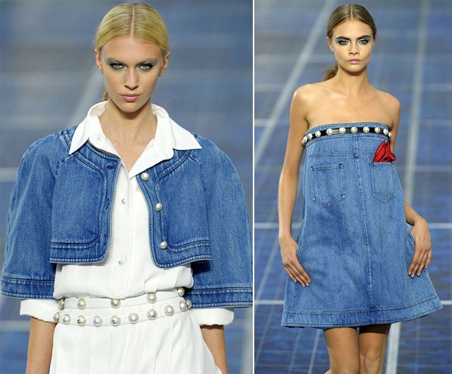 Já Karl Lagerfeld, Chanel, utilizou o tradicional blue jeans com pegada jovem e anos 80 para toda e qualquer mulher chique, jovem e moderna. O conceito trabalhado por Karl não deixou que a Chanel perdesse sua forma clássica e elegante na passarela, fazendo o tão comum jeans ganhar vida para os amantes da grife.