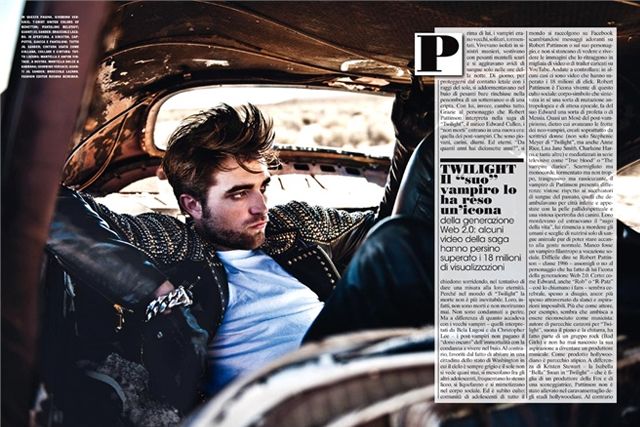 Com peças em couro e com seu inconfundível cabelo bagunçado, Robert Pattinson foi fotografado por Caitlin Cronenberg em looks realmente incríveis aos olhos.“Rob tem muito mais cultura do que pode parecer. Ele lê Martin Amis e Maupassant. Ele é um cinéfilo sofisticado, ele tem mais do que um conhecimento superficial de filmes franceses, ele menciona Jacques Audiard (Read My Lips, Rust and Bones) como sendo um dos diretores com quem gostaria de trabalhar, e diz que o personagem que aspira fazer é o de Daniel Auteuil em “Le deuxième souffle”, filme de Alain Corneau", diz Gianni Canova que escreveu o perfil de Pattinson que acompanha o editorial.