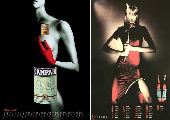 Calendário Campari 2000 e 2005Depois de Mila Jovovitch ter representado 2012 “It’s the End of The World Baby!” a musa Campari para 2013 é Penélope Cruz em “Kiss superstition goodbye”, que veste vermelho Campari e causa frisson sob as lentes de Kristian Shuller, que capta toda a sedução e afeto de Penélope, junto a sua cor marcante; o vermelho.